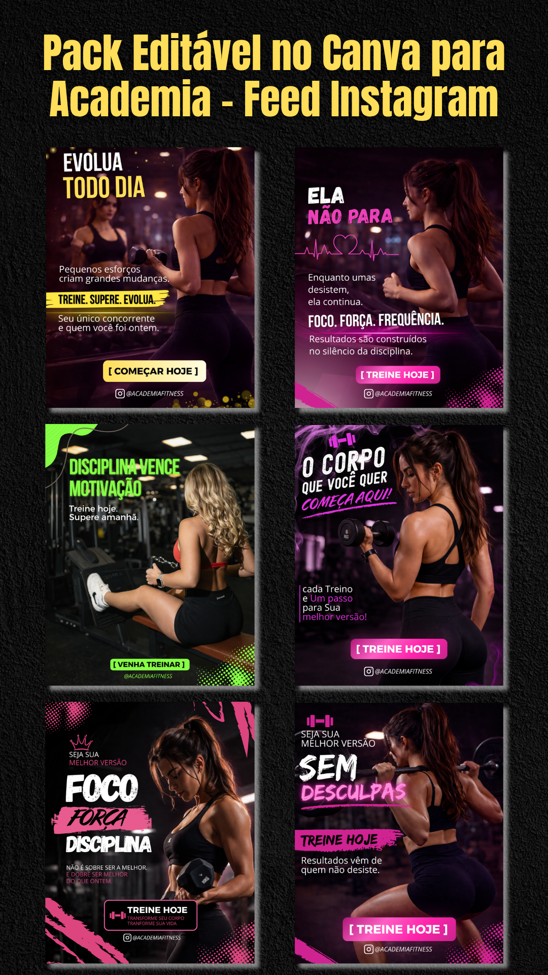 Comprando somente hoje, vai levar o Pack Editavel no Canva para Academia – Feed Instagram